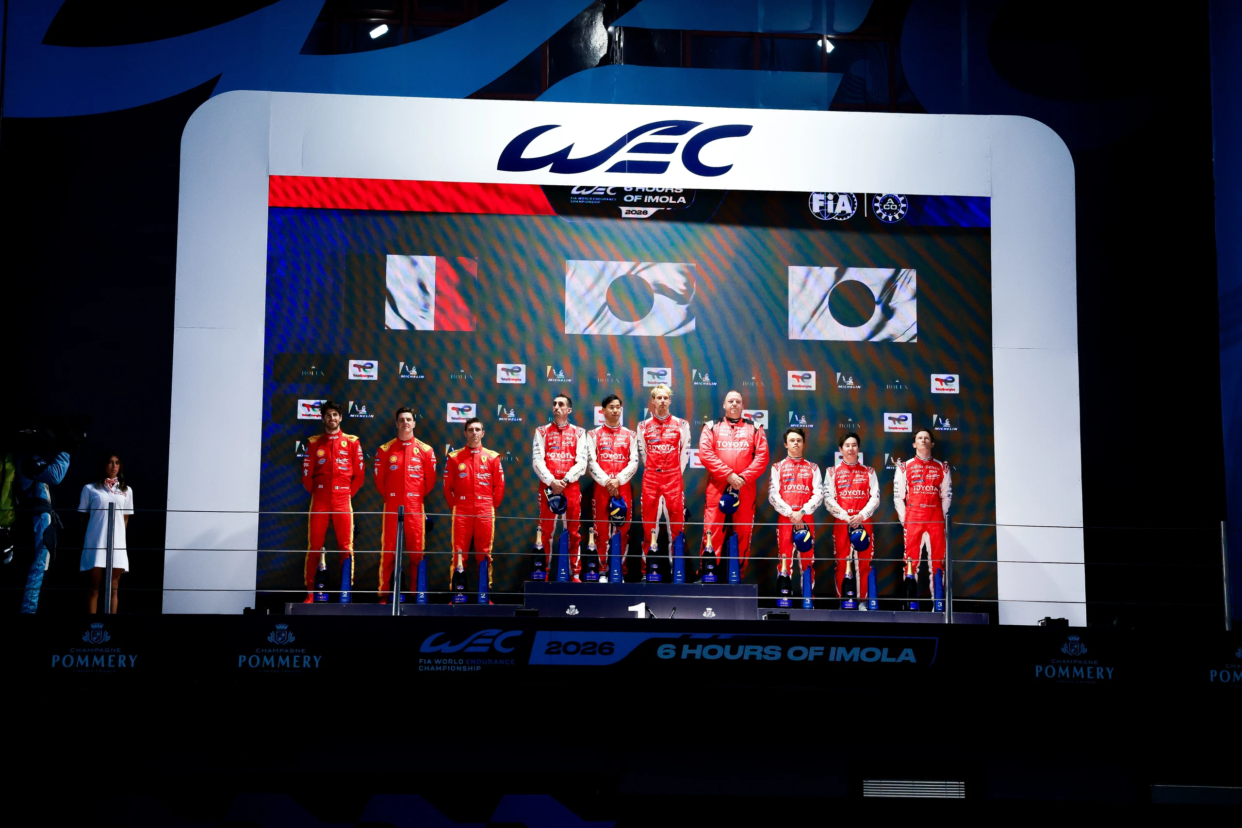 TOYOTA RACING sætter sig tungt på podiet ved sæsonens åbningsløb i weekenden på Imola-racerbanen i Italien i World Endurance Championship også kendt som Le Mans-serien. Det er nemlig både blevet til sejr for teamets hybridracerbil TR010 HYBRID med nummer 8 og til en tredjeplads til Toyota hybridracerbilen med nummer 7.